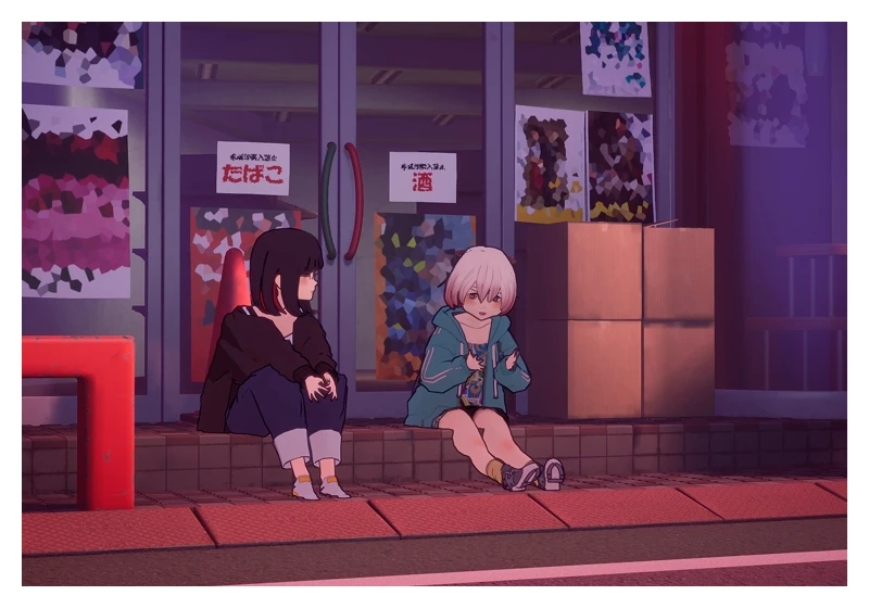 現実世界のカフェで作業をする白井。そこへ大学の同級生たちがやってきて、楽しげな会話が始まる。しかし、白井は現実の友達に決して心を開いていない。彼女が唯一心を許すのは、バーチャル下北沢のアバター友達ジェニ子。白井とジェニ子は『趣味はなんですか?と聞かれた時のうまい逃げ方』について、不毛な議論を交わす。